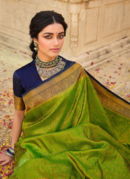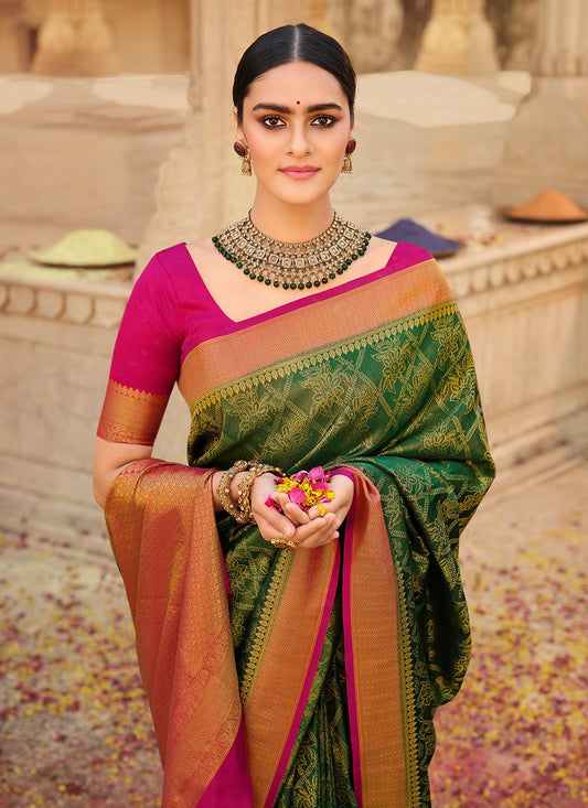 Classic Silk Green Patch Border Saree