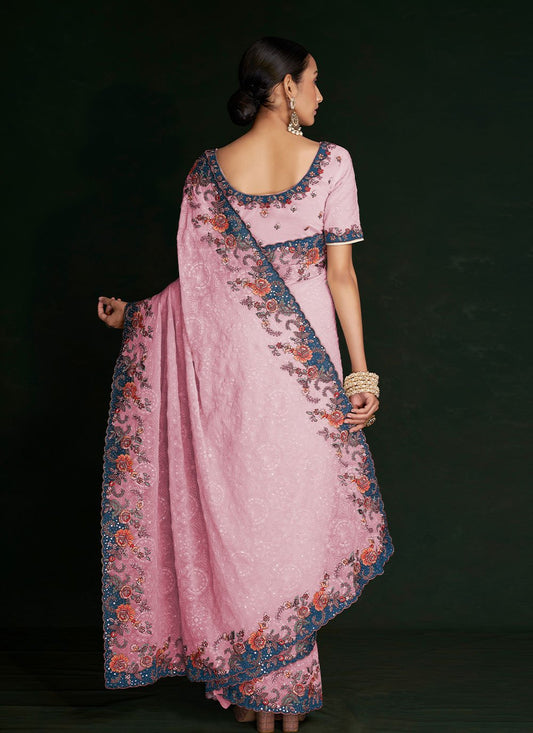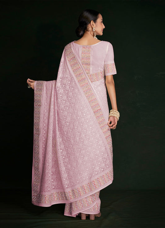 Classic Georgette Pink Lucknowi Work Saree