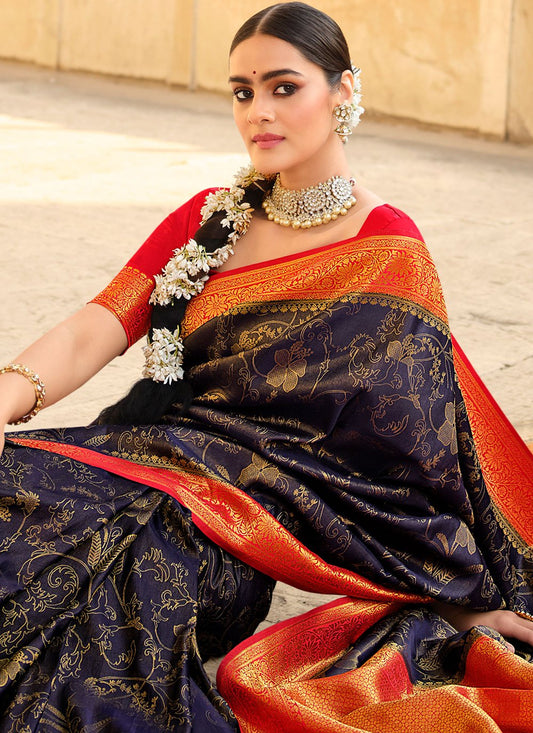 Contemporary Banarasi Silk Orange Patch Border
