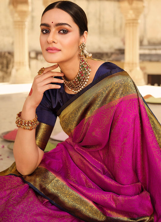 Classic Silk Fuchsia Patch Border Saree