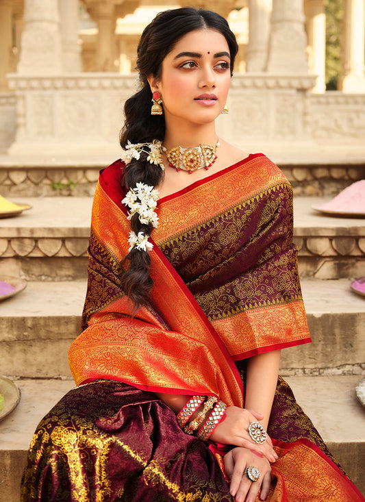 Contemporary Silk Purple Patch Border Saree