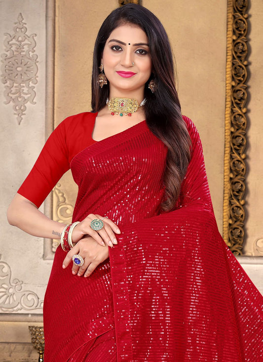 Contemporary Georgette Red Sequins Saree