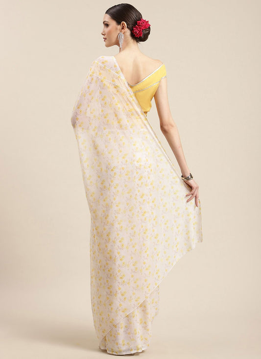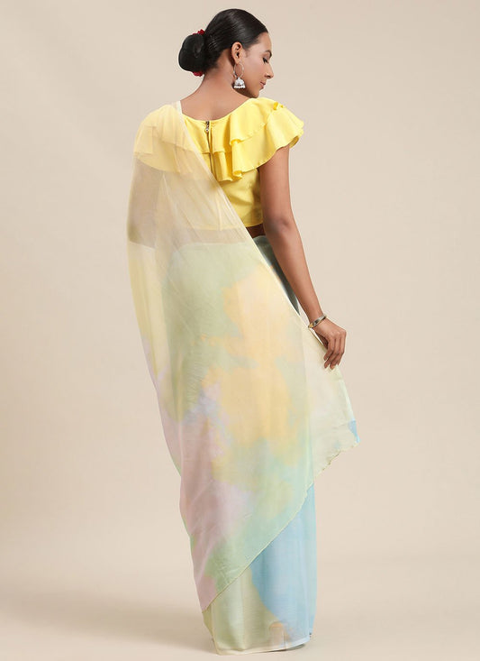 Contemporary Chiffon Yellow Digital Print Saree