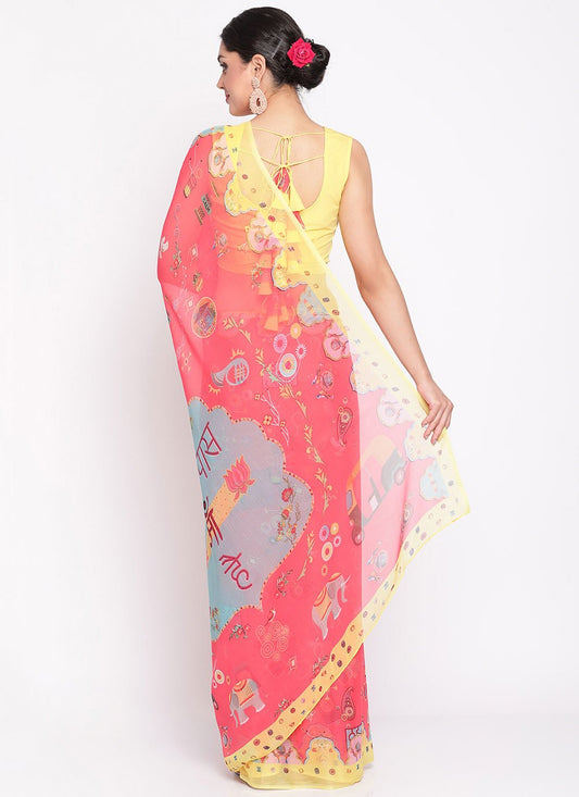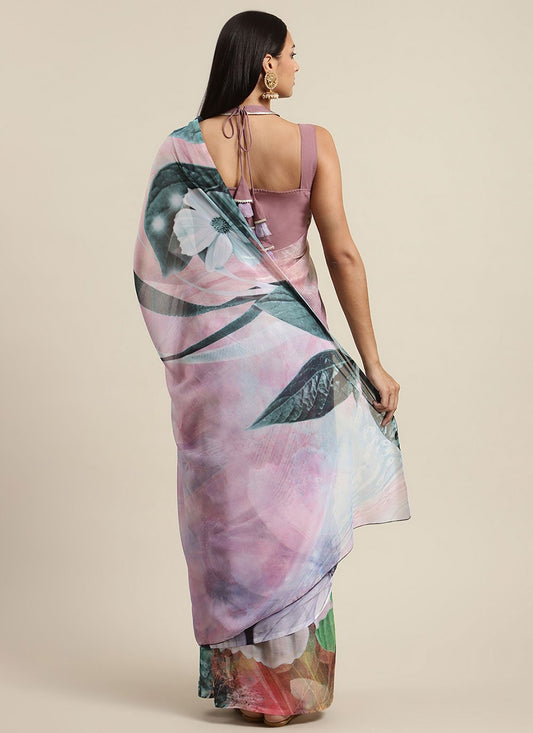 Trendy Saree Chiffon Pink Digital Print