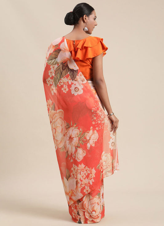 Contemporary Chiffon Orange Digital Print Saree