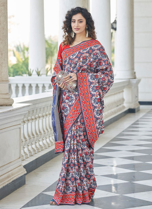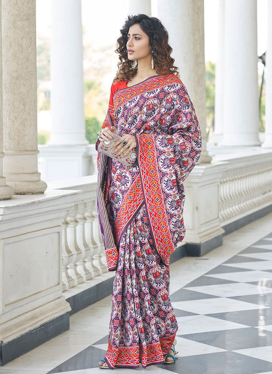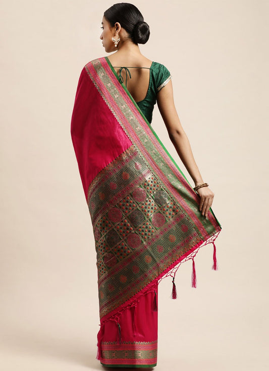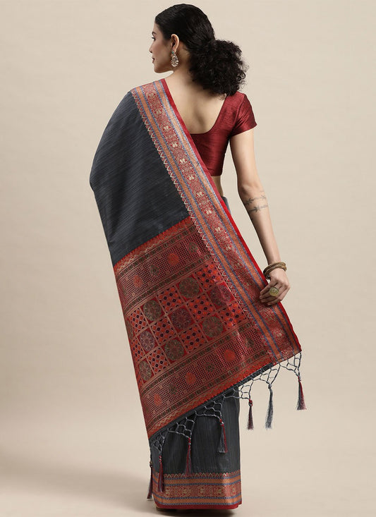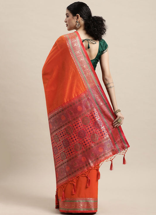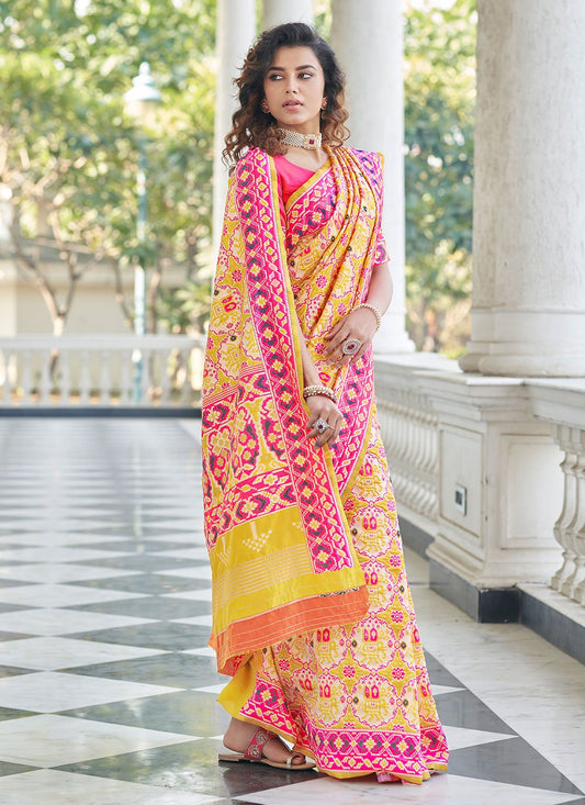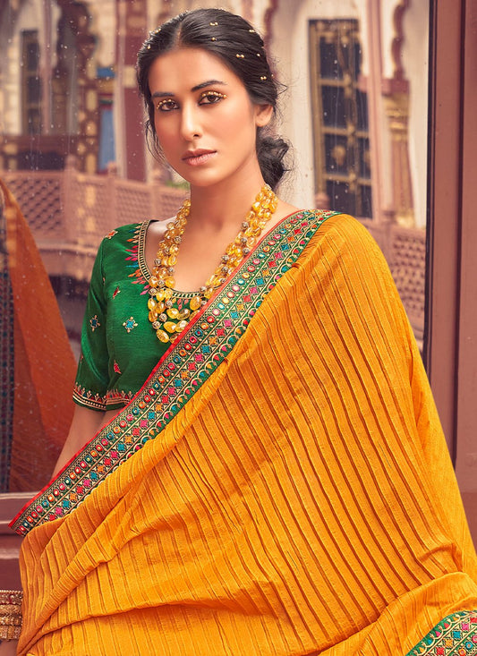 Contemporary Vichitra Silk Yellow Embroidered Saree