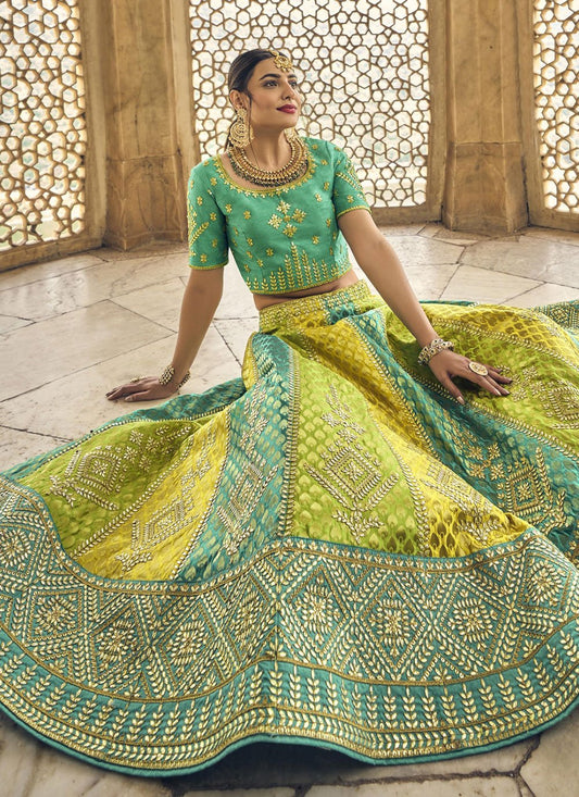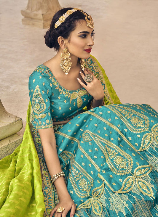 Lehenga Choli Banarasi Silk Turquoise Embroidered