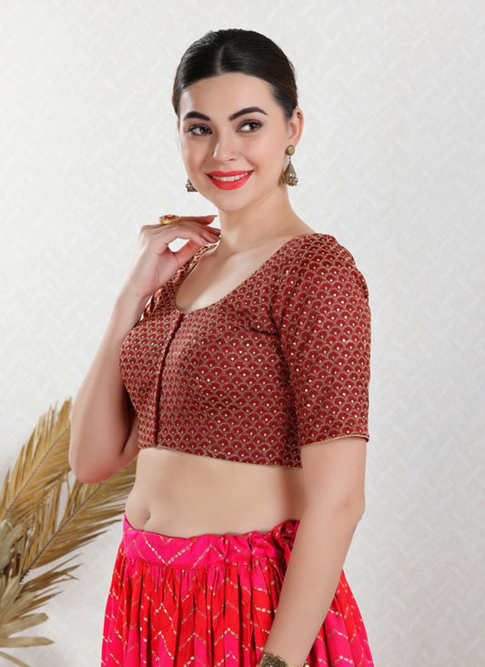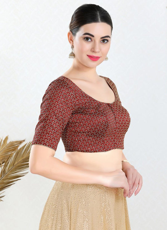 Designer Blouse Art Silk Brown Embroidered
