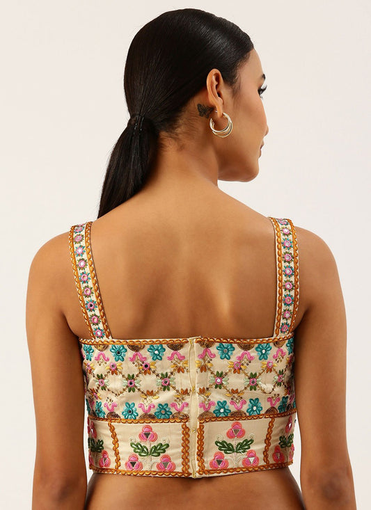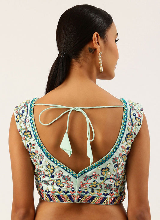 Designer Blouse Silk Turquoise Embroidered Blouse