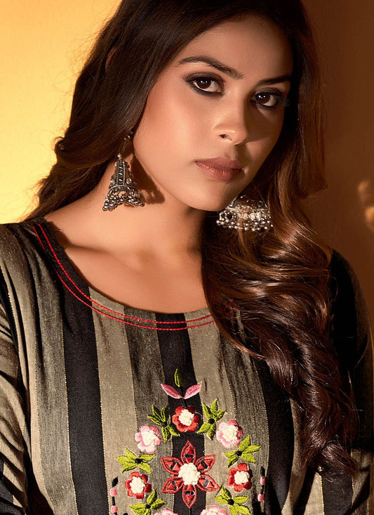 Designer Kurti Cotton Grey Embroidered Kurtis