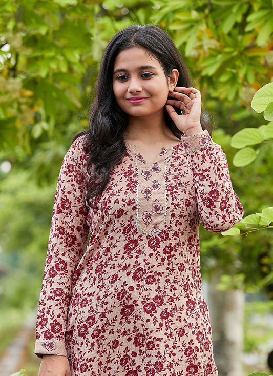 Designer Kurti Cotton Pink Embroidered Kurtis
