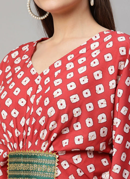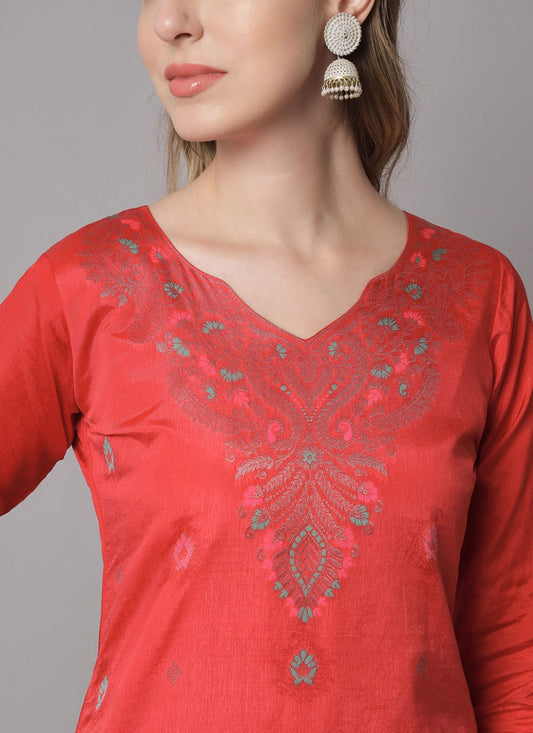 Casual Kurti Cotton Orange Embroidered Kurtis