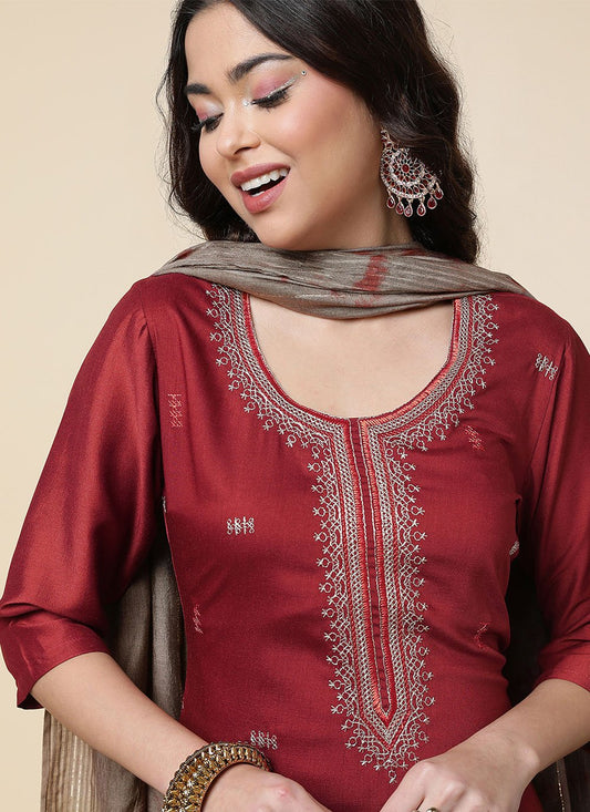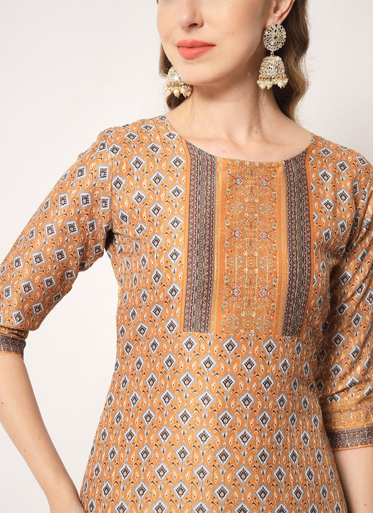 Salwar Suit Rayon Yellow Embroidered Salwar