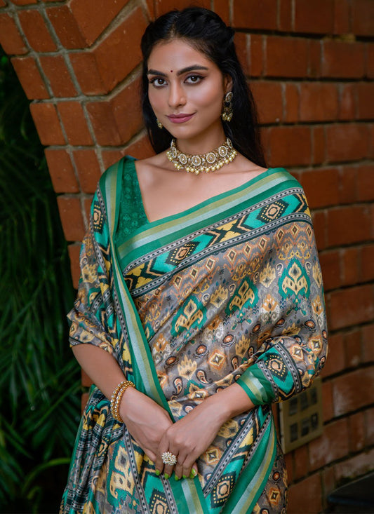 Trendy Saree Cotton Silk Green Print