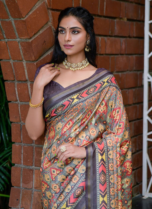 Contemporary Cotton Silk Multi Colour Print