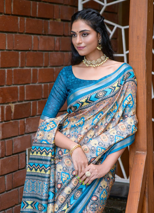 Classic Cotton Silk Firozi Print Saree