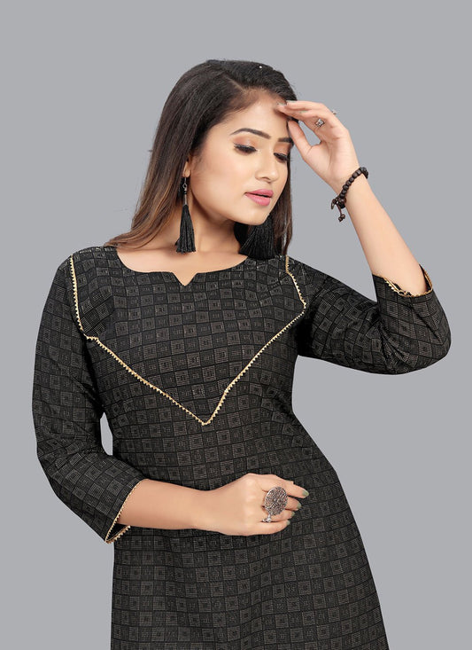 Designer Kurti Cotton Black Print Kurtis