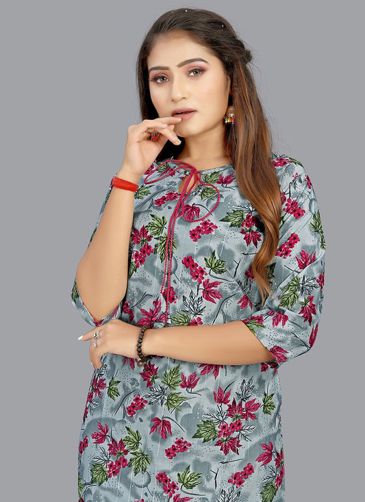 Casual Kurti Faux Crepe Grey Print