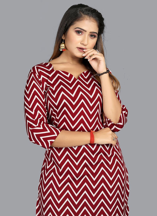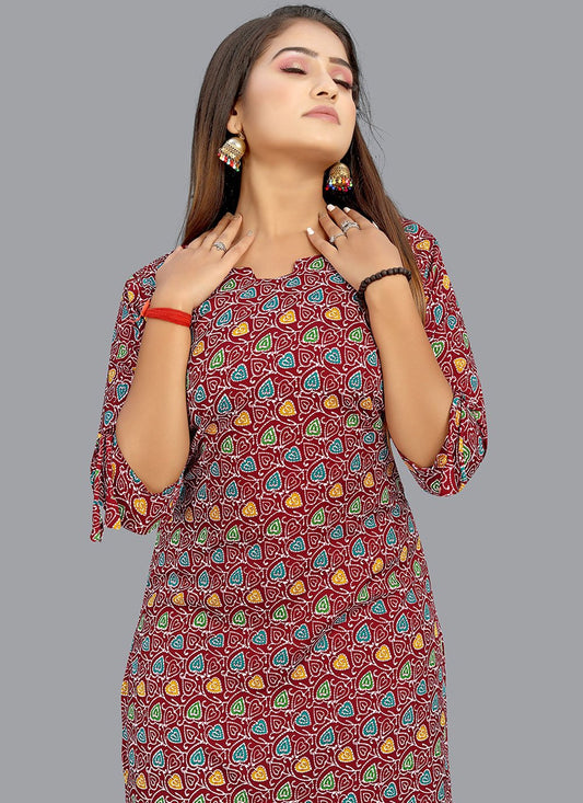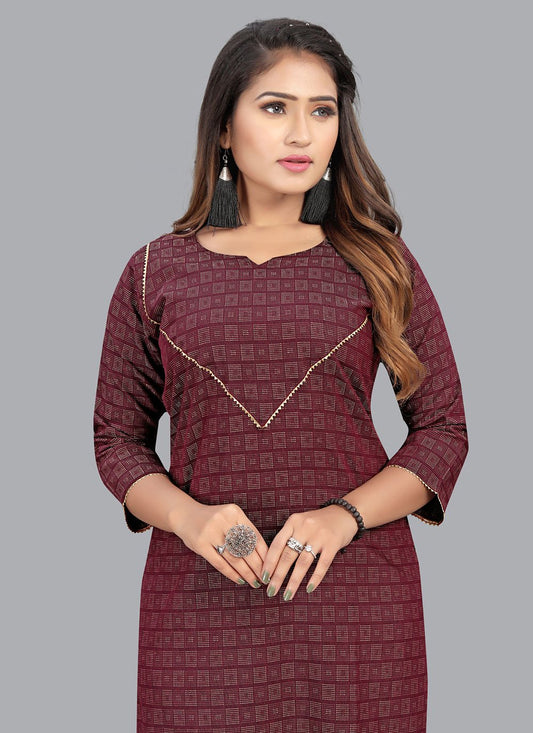 Party Wear Kurti Cotton Wine Print