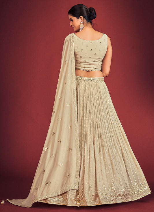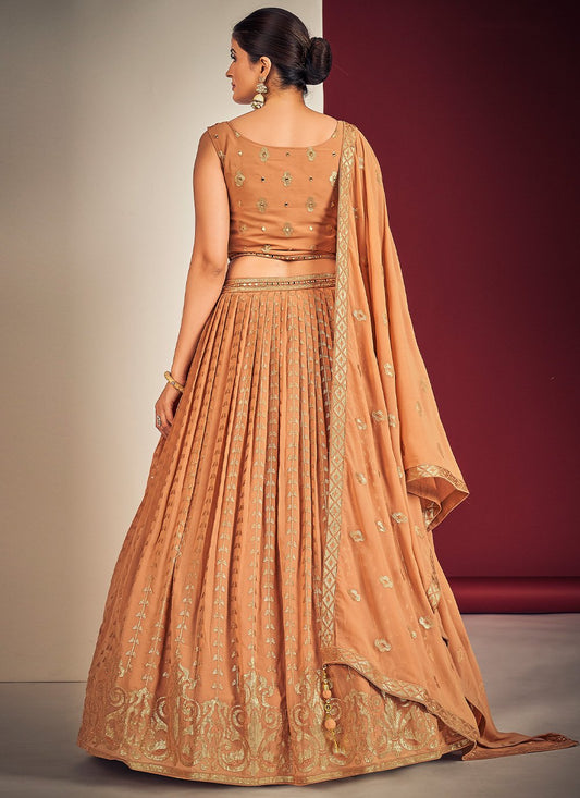 Lehenga Choli Georgette Peach Mirror Lehenga