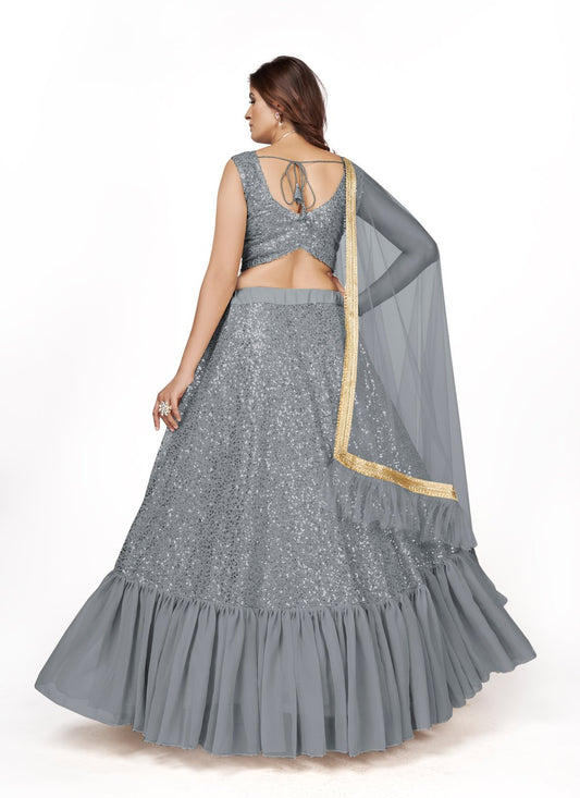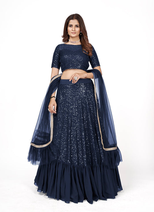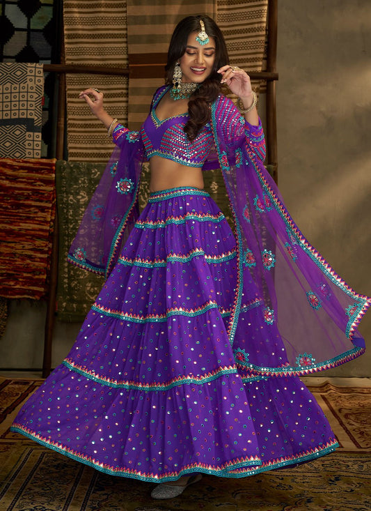 Lehenga Choli Georgette Purple Sequins Lehenga