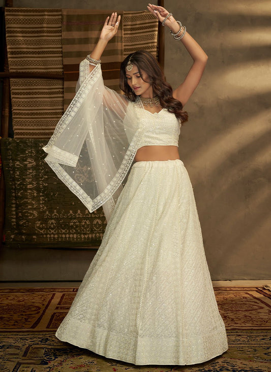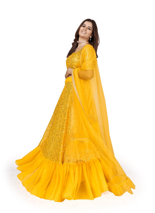 Lehenga Choli Georgette Mustard Embroidered Lehenga