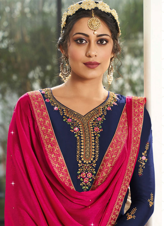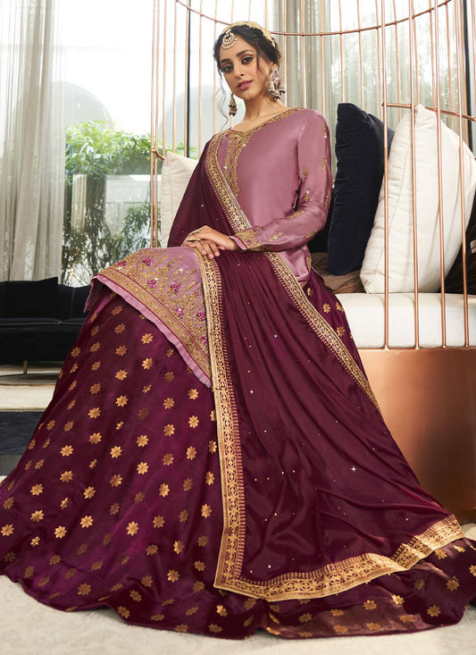 Lehenga Choli Georgette Satin Mauve Embroidered