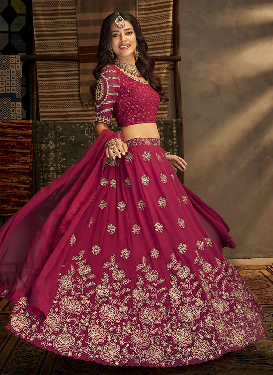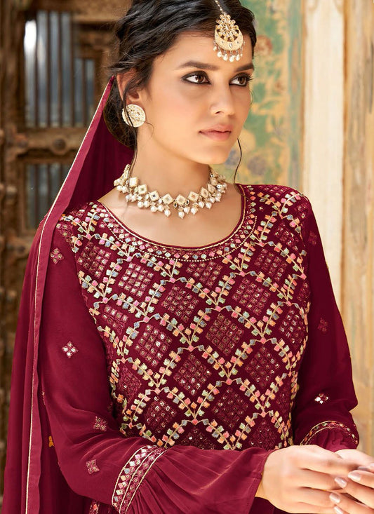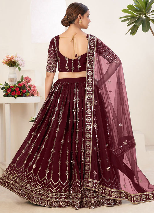 Lehenga Choli Faux Georgette Maroon Embroidered
