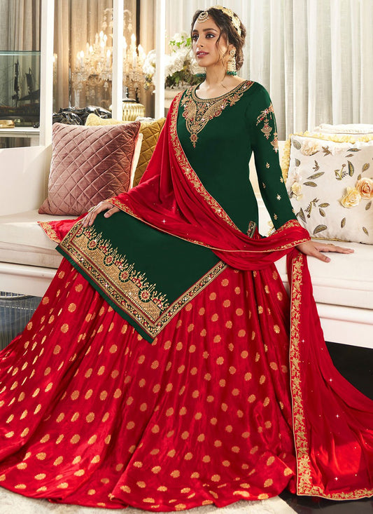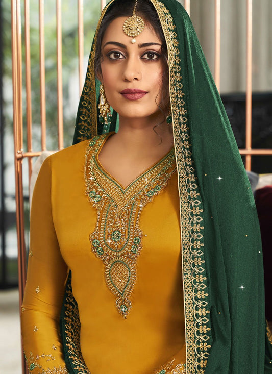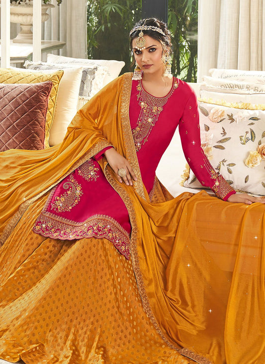 Lehenga Choli Georgette Satin Mustard Embroidered