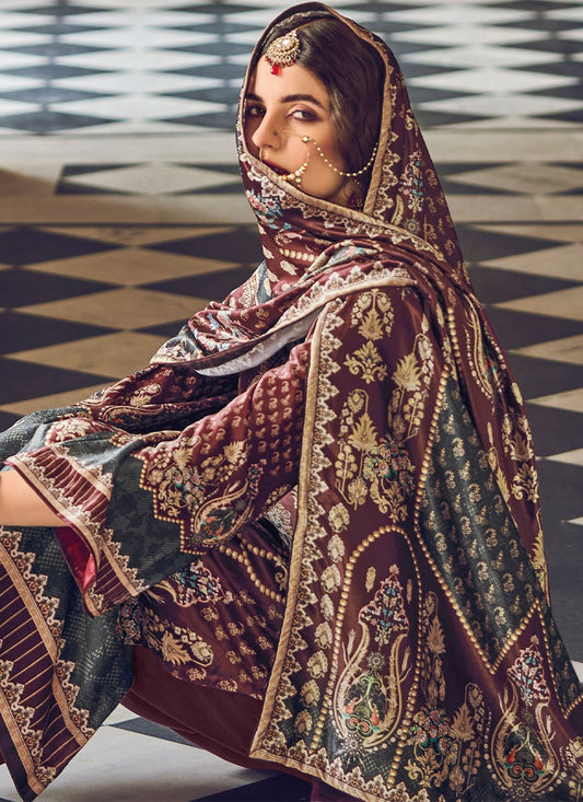 Palazzo Salwar Suit Georgette Beige Embroidered
