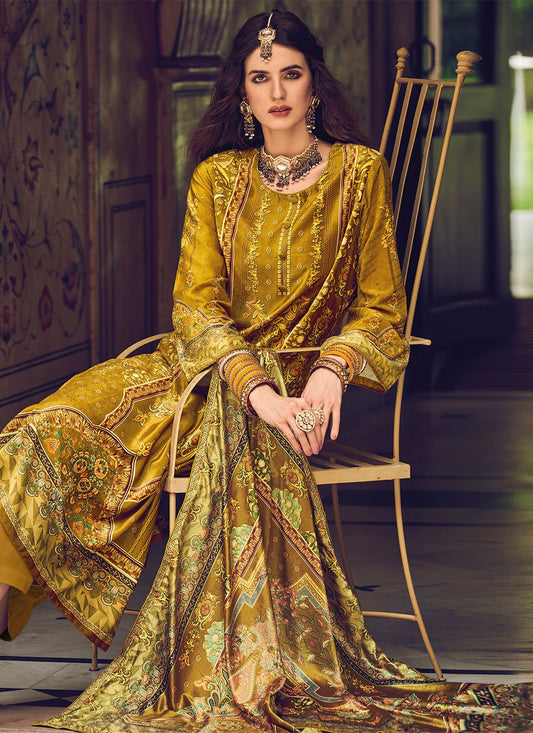 Palazzo Salwar Suit Georgette Mustard Embroidered