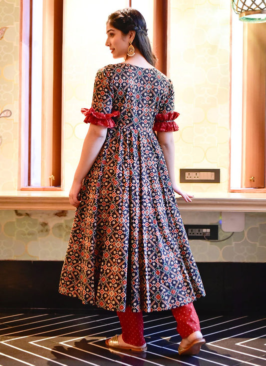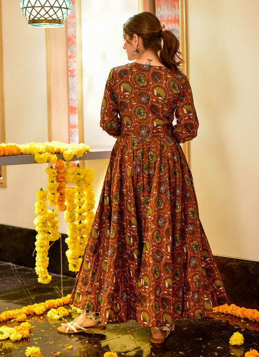 Designer Gown Cotton Silk Brown Digital