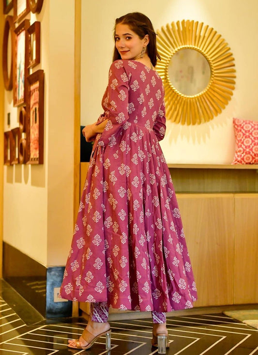 Designer Gown Cotton Purple Embroidered Gown