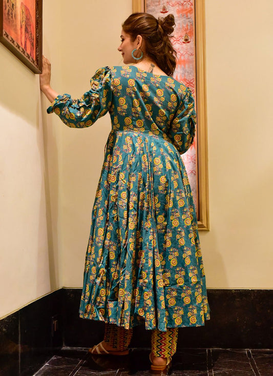 Gown Cotton Silk Green Digital Print