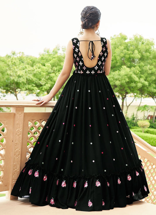 Designer Gown Georgette Black Embroidered Gown