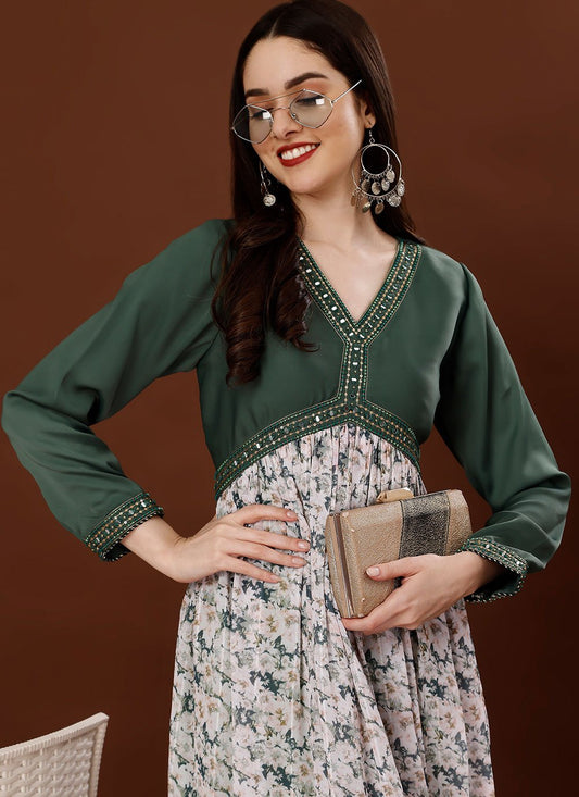 Designer Kurti Chiffon Satin Green Hand