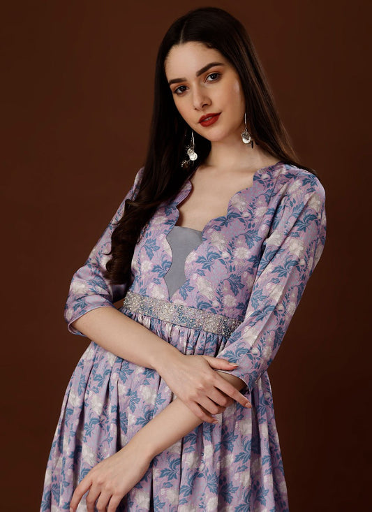 Party Wear Kurti Chiffon Satin Lavender