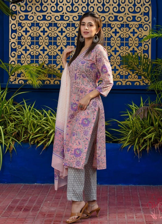 Designer Kurti Cotton Pink Purple Fancy