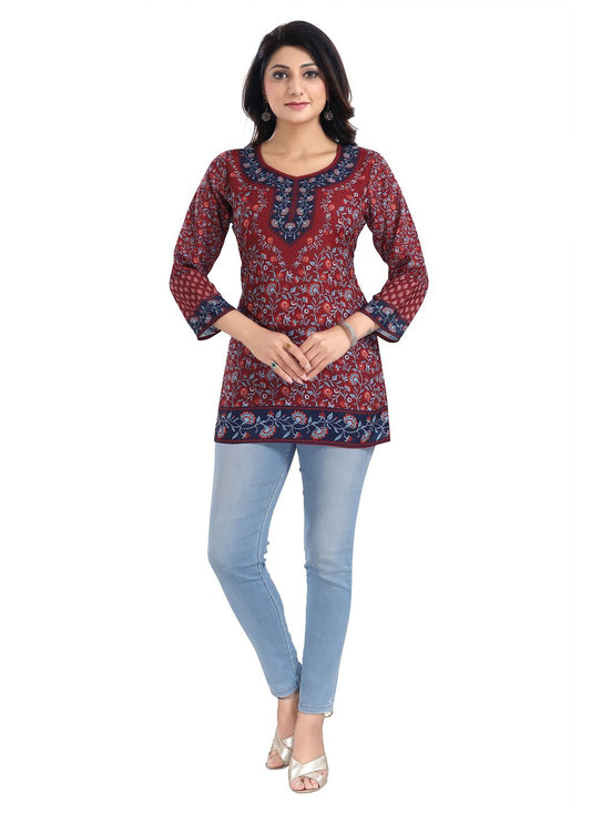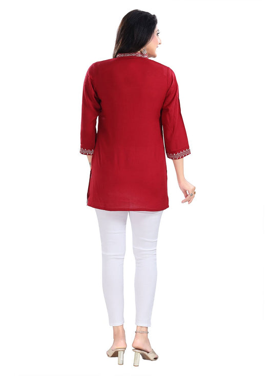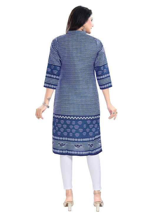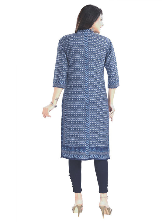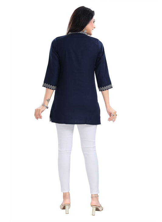 Designer Kurti Viscose Blue Embroidered Kurtis