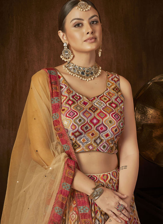 Lehenga Choli Net Yellow Embroidered Lehenga