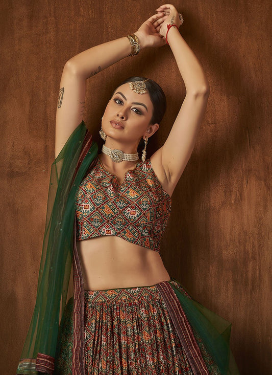 Lehenga Choli Georgette Green Embroidered Lehenga