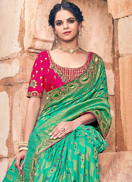 Contemporary Silk Sea Green Embroidered Saree