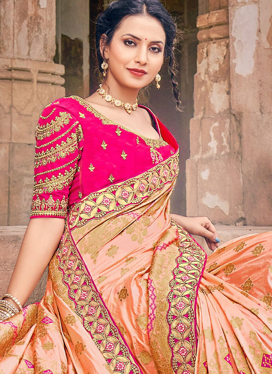 Classic Silk Peach Embroidered Saree