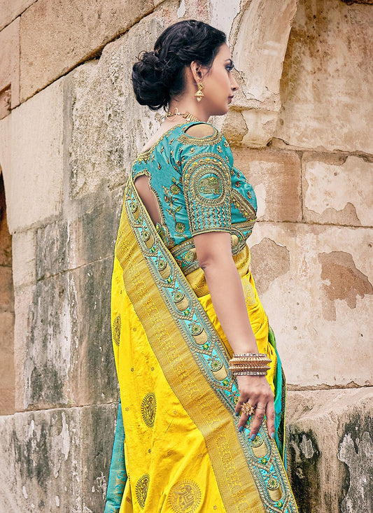 Classic Silk Yellow Embroidered Saree