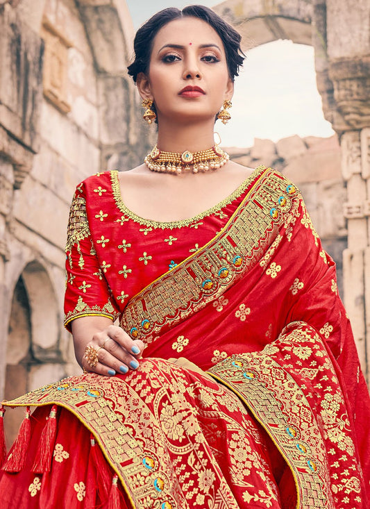 Classic Silk Red Embroidered Saree