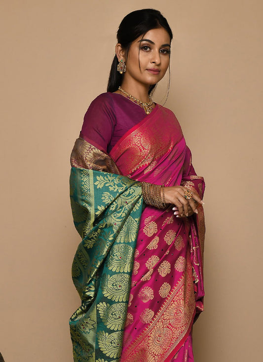 Trendy Saree Kanjivaram Silk Rani Weaving