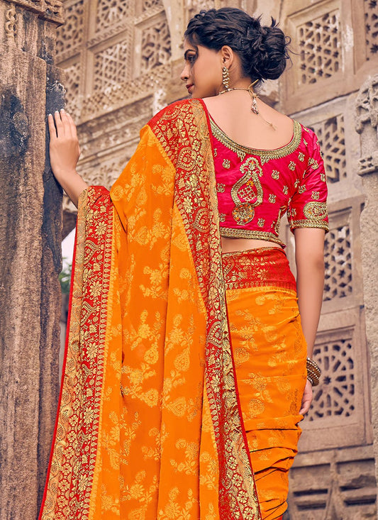 Classic Georgette Orange Patch Border Saree