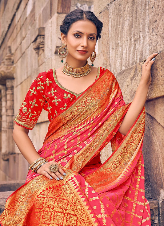 Designer Silk Blue Pink Embroidered Saree