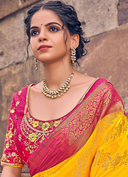 Contemporary Georgette Yellow Embroidered Saree