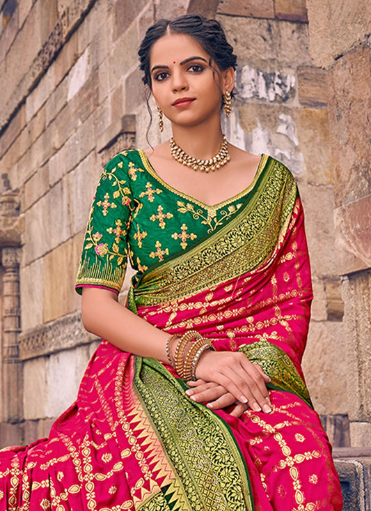 Designer Silk Green Magenta Embroidered Saree
